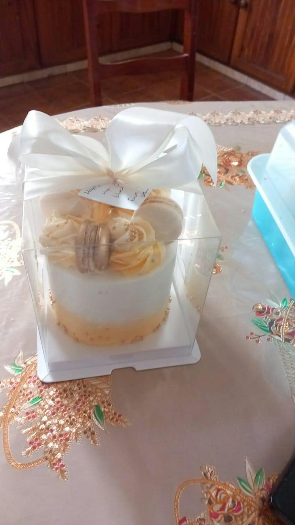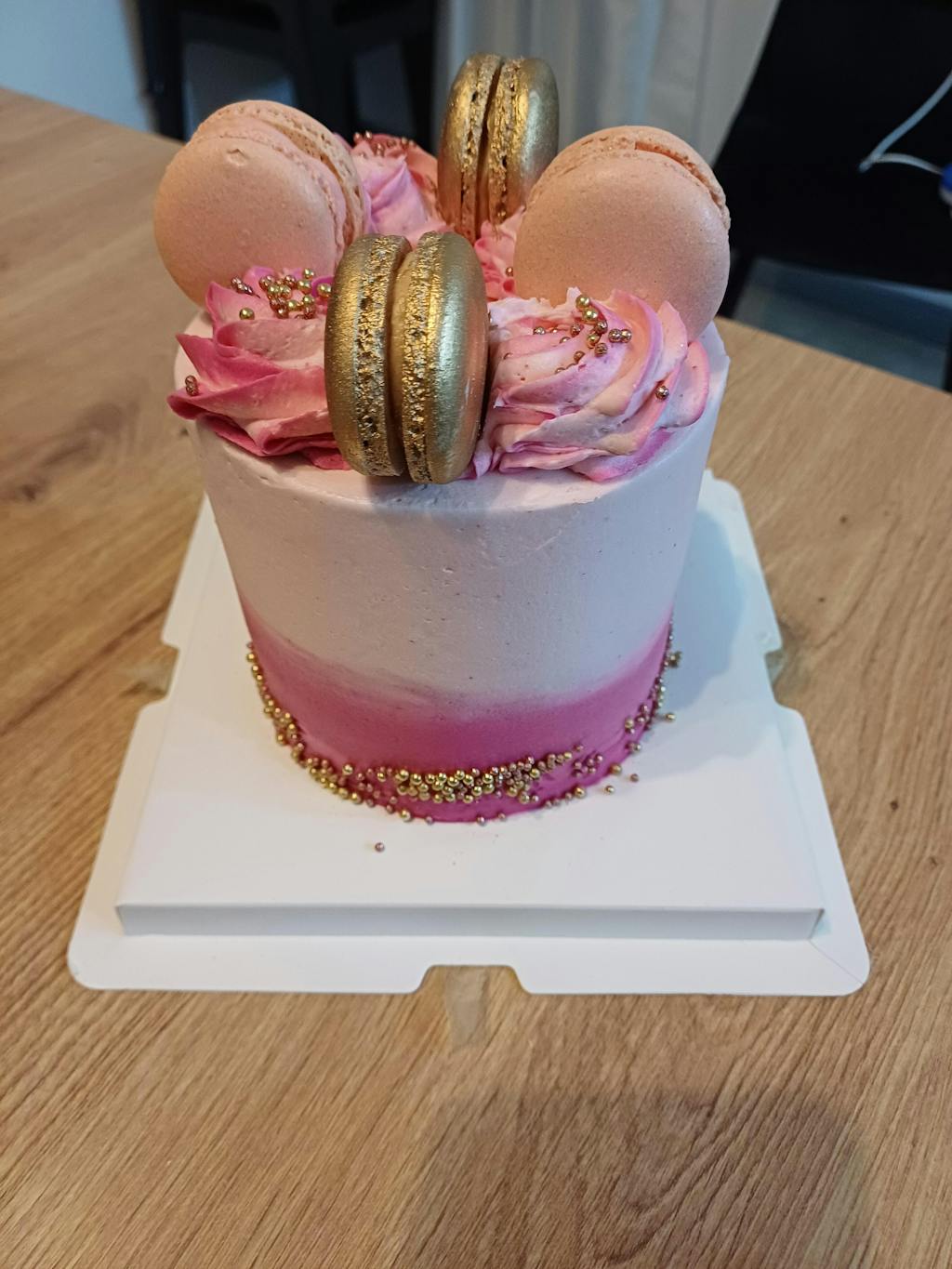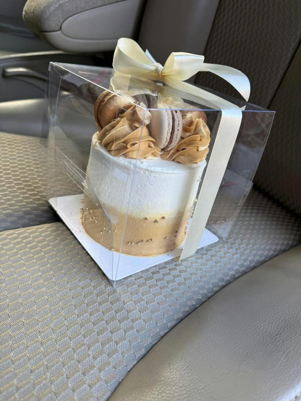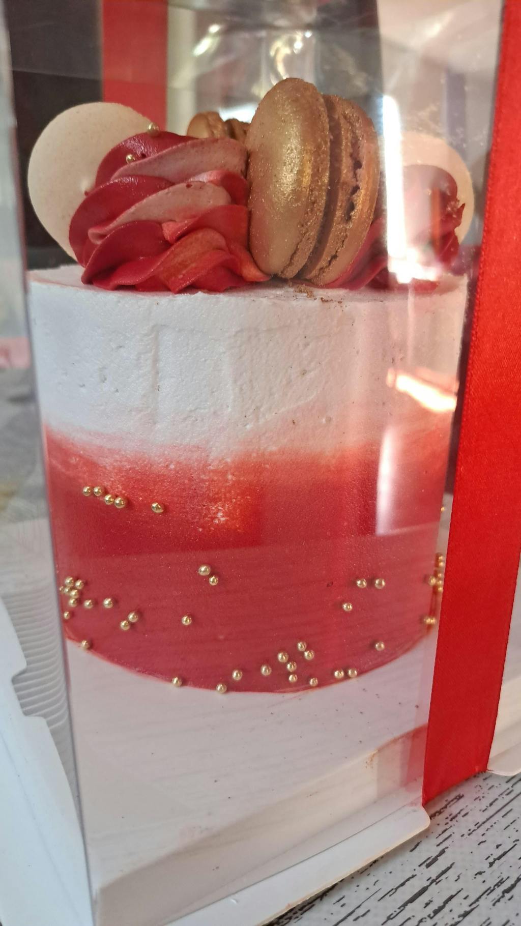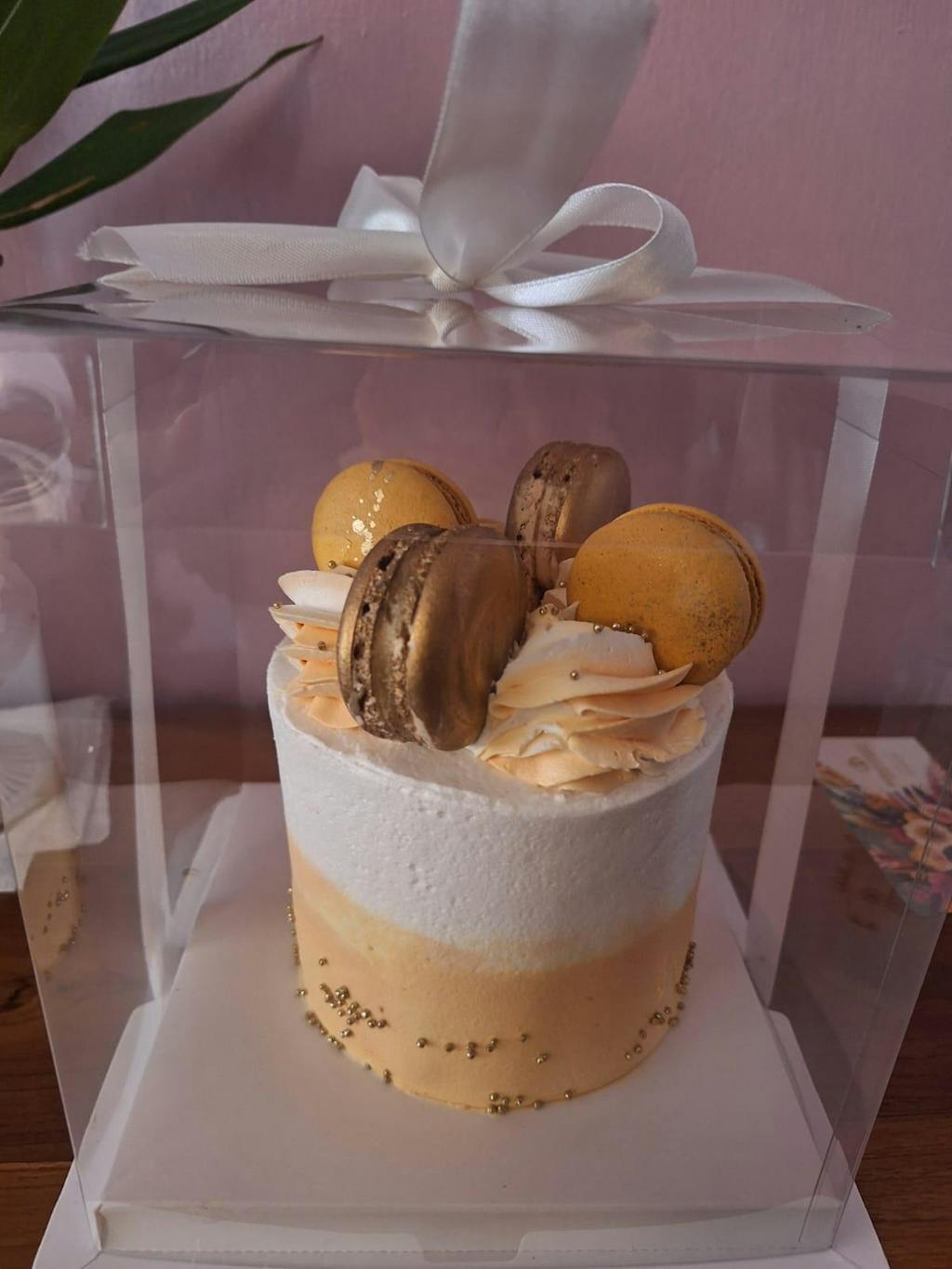 This delicious and cute Mini Cake is a fantastic choice for a small get-together. Holds 4-5 serves, just perfect for a heartwarming celebration. Decorated with macarons and edible sparkly beads. Irresistible!
