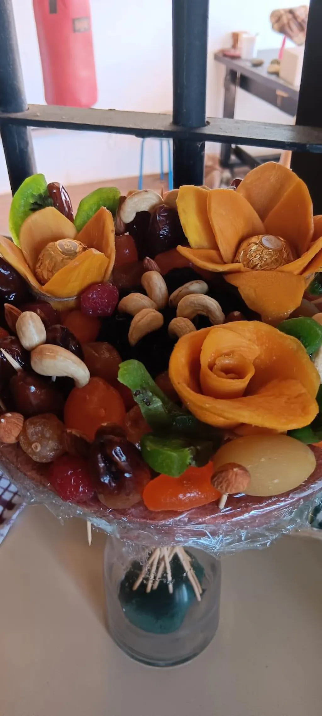 An elegant and meaningful gift featuring a rich selection of dried fruits and premium nuts, beautifully arranged to symbolise abundance, care, and gratitude. Wrapped in luxurious red and gold, this bouquet is a refined way to honour traditions and celebrate a beloved mum on Motherâs Day. A timeless gesture of respect and love, perfect for Mauritiusâ diverse and heartfelt celebrations.