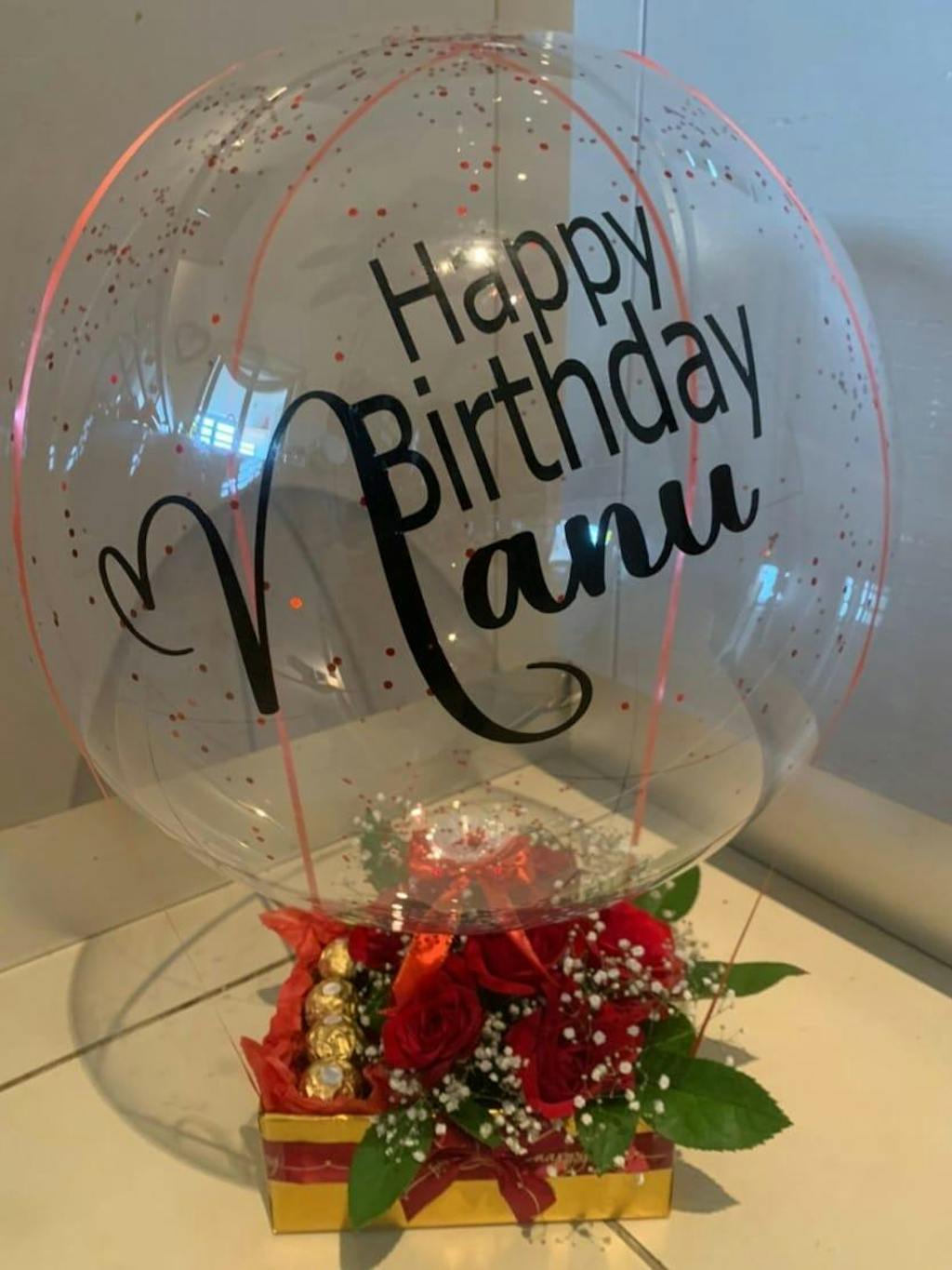 I had previously made a purchase from this website once before. I ordered a beautiful personalized balloon with the flowers and chocolates. The delivery was punctual and kept me updated about the delivery process. My grandma's face lit up with joy as soon as she saw it and it made her day even more special. Thank you for helping us make Grandma's birthday truly magical.