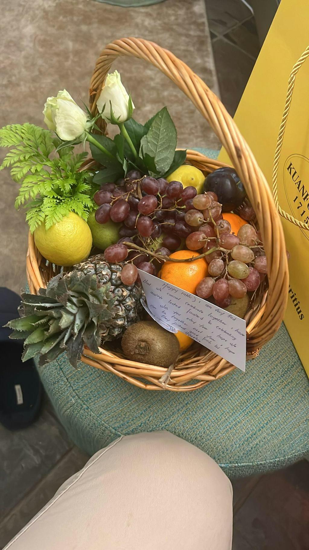 The flower arrangement and fruit basket were awesome.