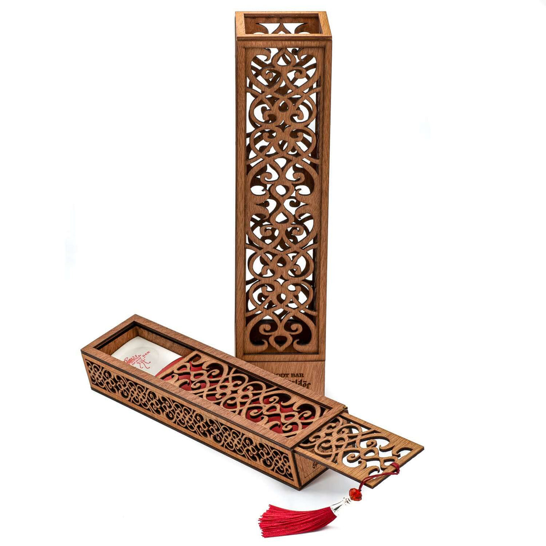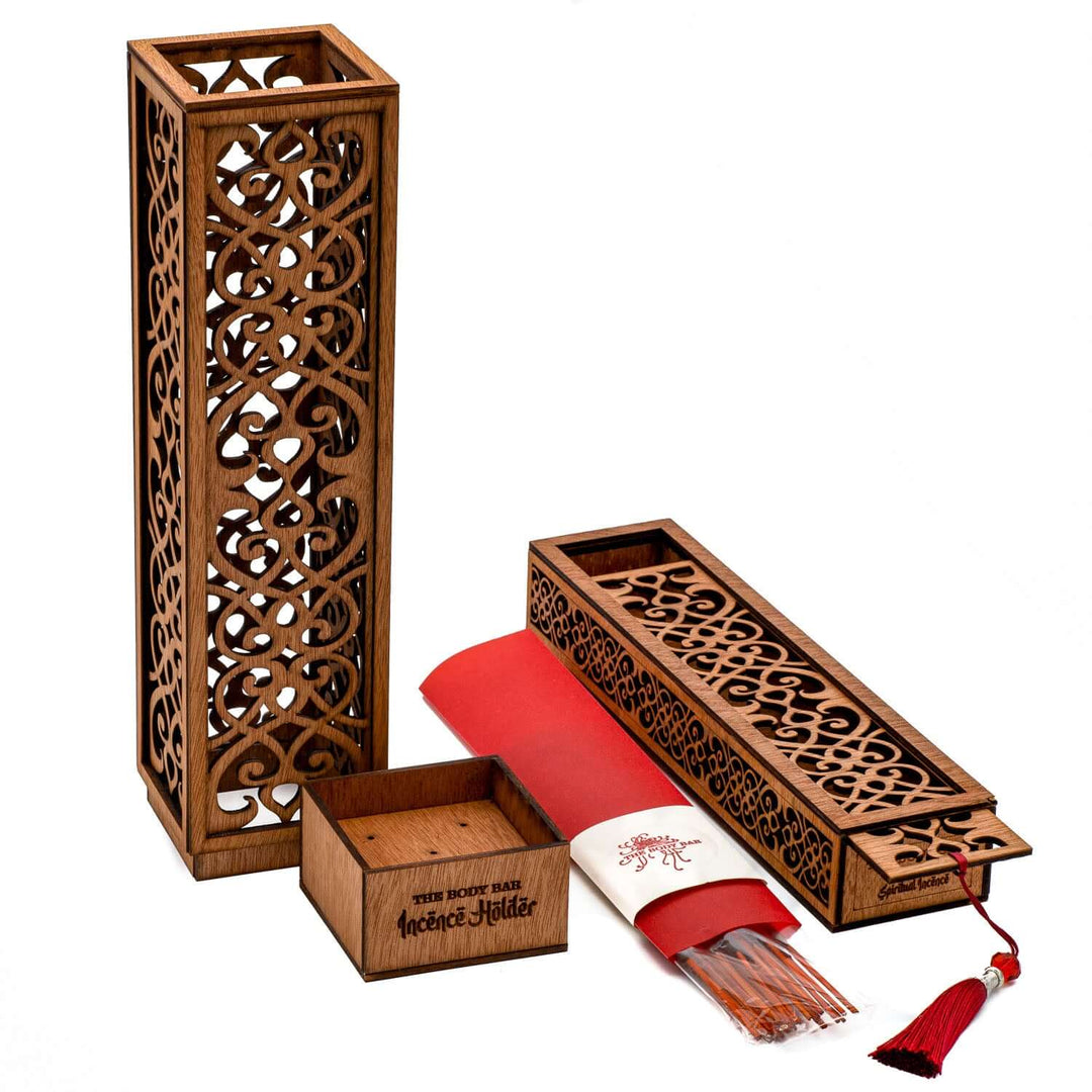Cadeau essentiel pour personne méditative et spirituelle. Un ensemble cadeau fait à la main de deux boîtes en bois sculpté et d'un bouquet complet de bâtons d'encens. Très pratique pour un usage quotidien, peut également devenir une pièce de décoration d'intérieur remarquable.