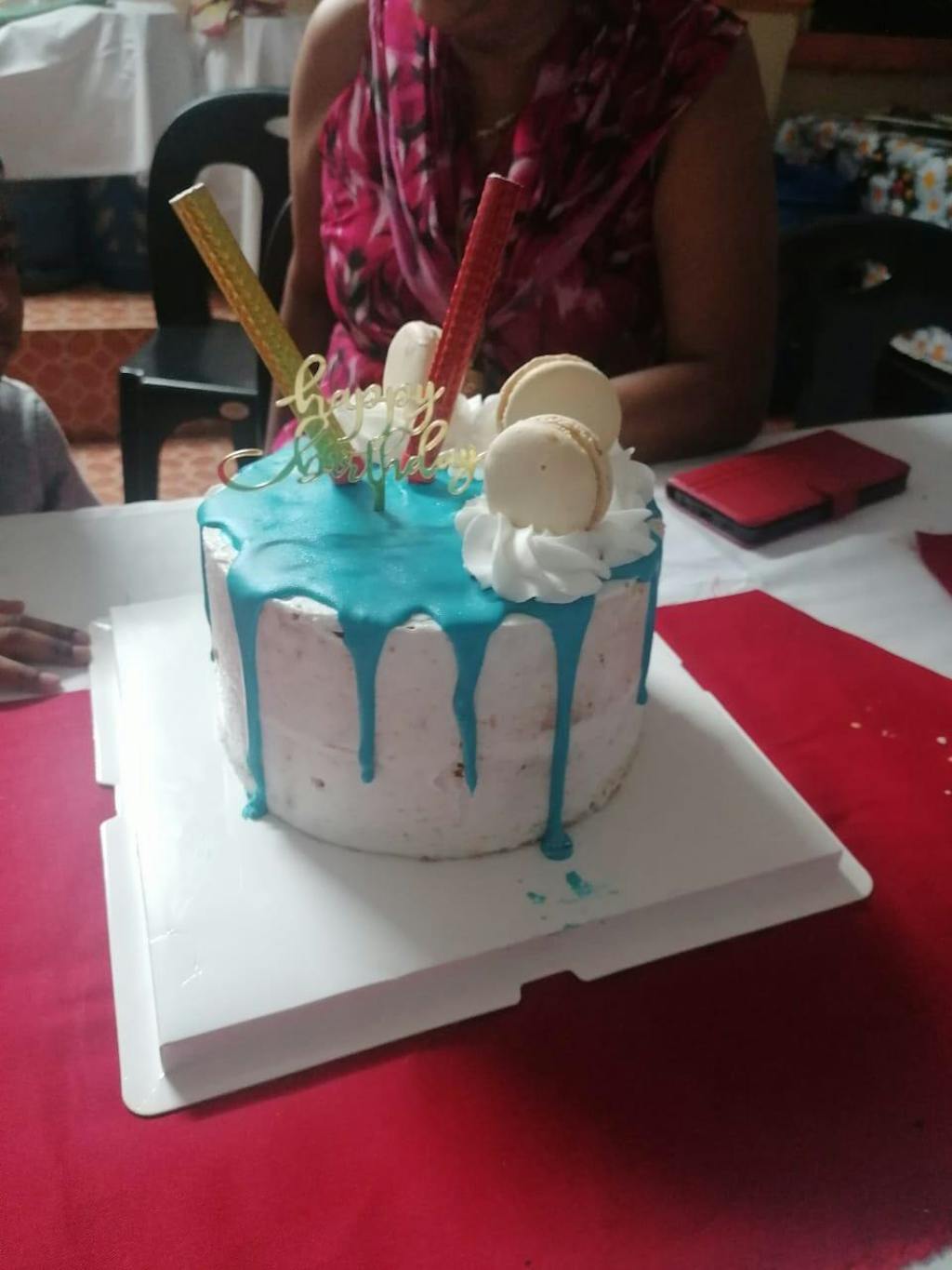 Gâteau d'Anniversaire Bleu Clair avec Macarons